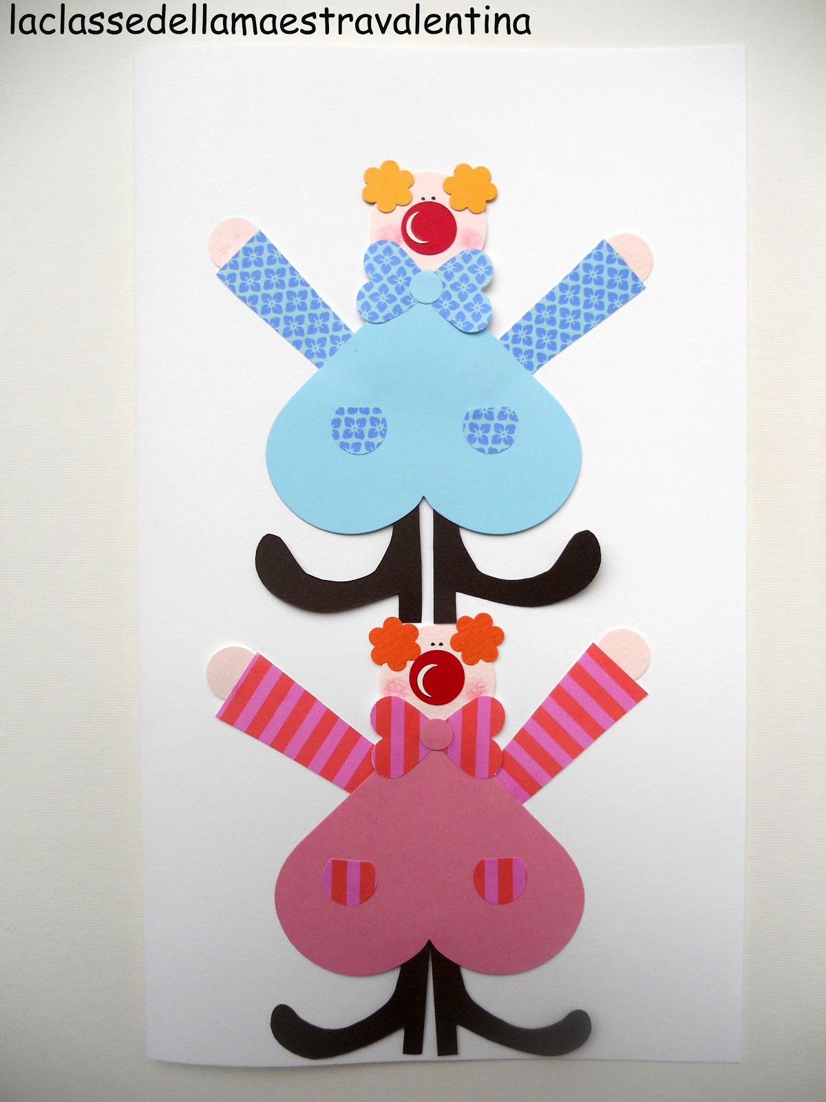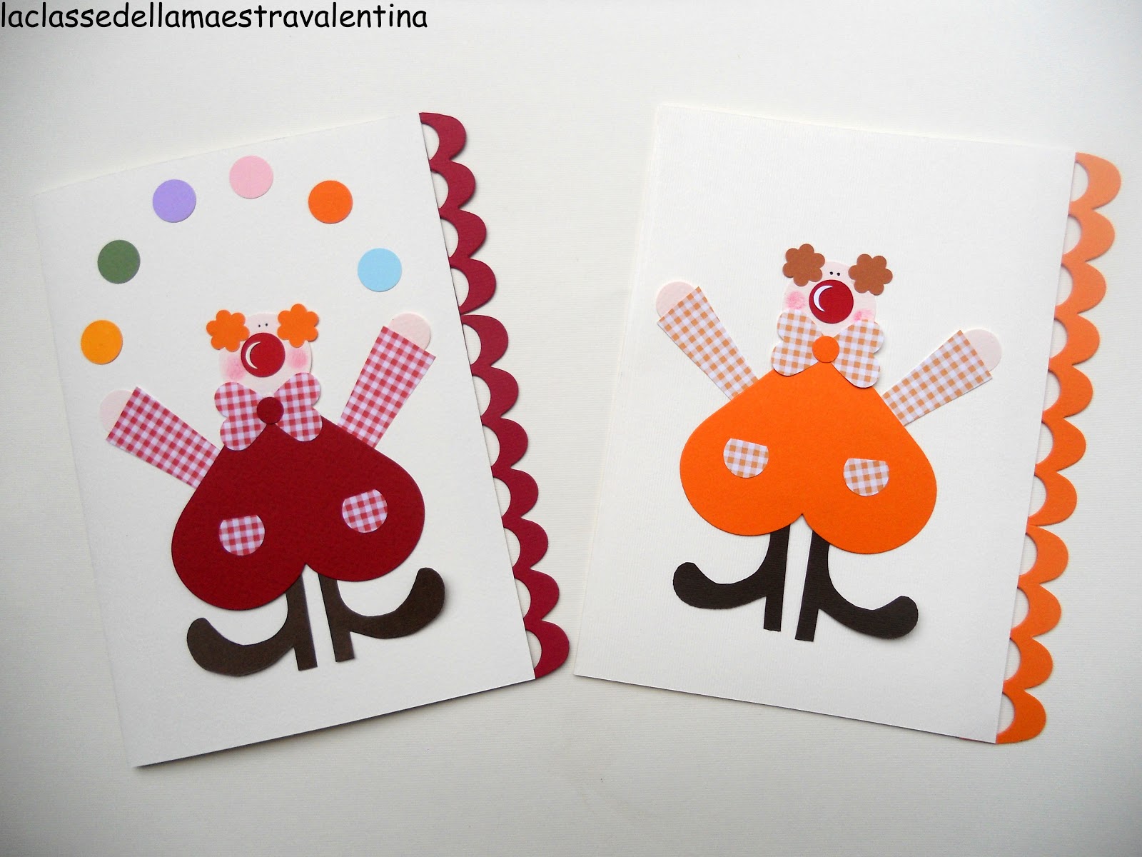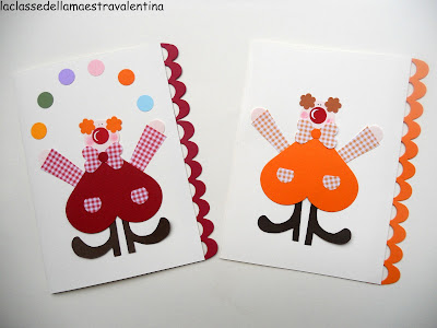 Sei riuscita a creare un certo movimento anche con il cartoncino! Lo scompiglio dei pagliacci rende tutto più festoso e chissà che bella festa si preannuncia con degli inviti così allegri. Bravissima.