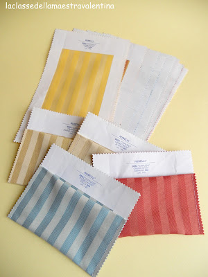 EliminaA settembre avevo dato il compito a mio marito di dire ad un suo conoscente di farmi avere quel tipo di campioni perché li avevo visti esposti e sapevo che successivamente li avrebbe buttati. Risultato? La prossima volta, per non farmi scappare l'occasione, MI ARRANGIO! Si è dimenticato... e così ho mancato un centinaio di campioni da poter usare come hai fatto tu... Dici che se li chiedo a qualsiasi tappezziere, che non sia un conoscente, me li possa dare?