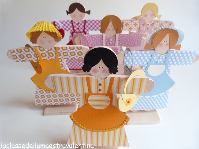 Grazie al magico seghetto della DREMEL, ho fatto delle sagome di bimba, che in seguito ho pitturato e abbellito con capelli di cartoncino, occhi e guanciotte.