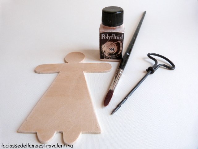 Per tenere in piedi la bambolina ho messo un archetto con la sparapunti, e ho realizzato un piccolo piedistallo fatto con uno stecchino e una base quadrata di compensato.