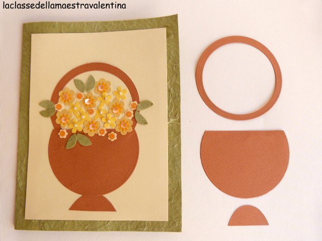 Per il biglietto ho utilizzato la carta gelso e poi ho fustellato fiori e foglie con del cartoncino.