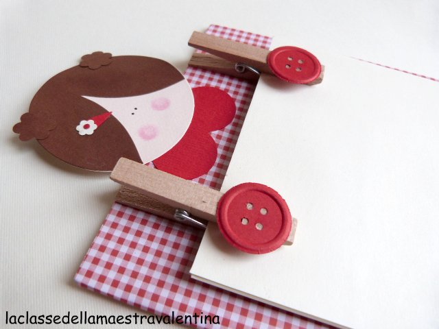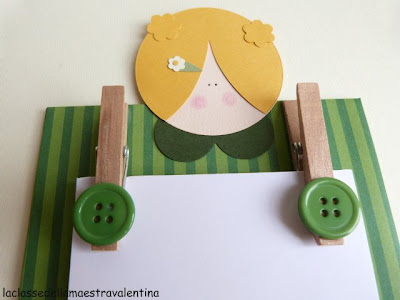 Inserendo i foglietti bianchi tra le mollette... ecco che la bimba indossa il grembiule.