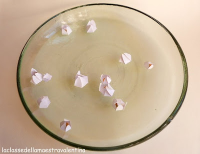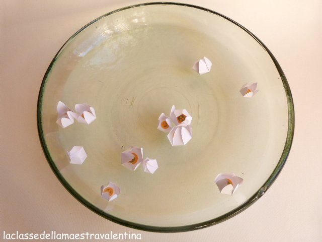 magia l’ho fatta fare ai miei bimbi e, una volta asciutti, hanno ripiegato i petali e hanno infilato i fiori in una bustina, per portarli a casa e mostrare la magia a mamma e papà.