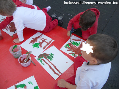 invece siamo andati in giardino ad osservare i nostri alberi (pino marittimo) e, dopo averli osservati per bene, li abbiamo dipinti.