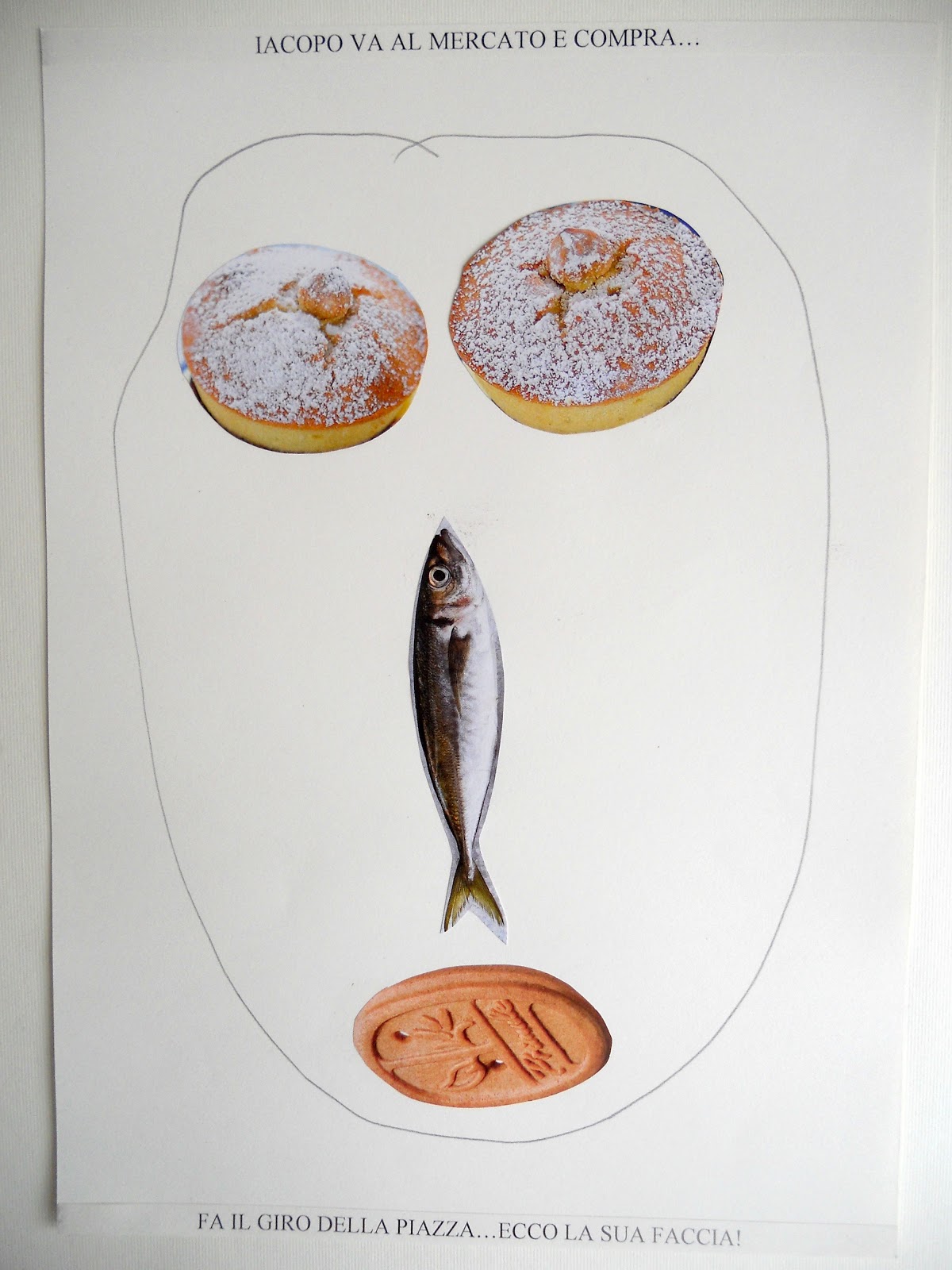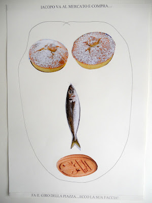 RispondiEliminaFantastica Agnese che usa un salame per fare un naso enorme rispetto agli occhi e stupendo Iacopo che ha creato una faccia stupita con "ingredienti" così diversi tra loro :D
