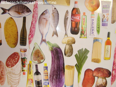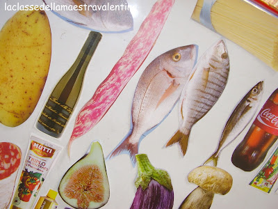 In un secondo momento ho ritagliato dalle riviste di cucina tanti alimenti e li ho disposti sul tavolo.