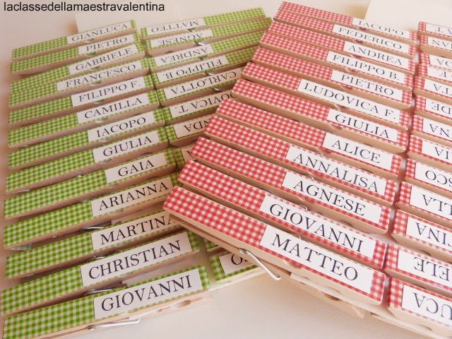 Carinissima idea,io ho utilizzato contrassegni l'anno scorso;quest'anno con i 5 anni.....mollette della mitica maestra VALENTINA!!!!!!