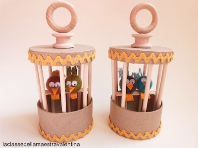 RispondiEliminaBellissime gabbiette e tenerissimi gli uccellini. Sarà uno dei prossimi lavoretti che farò con mia figlia e cuginetti. Sicurooooo.