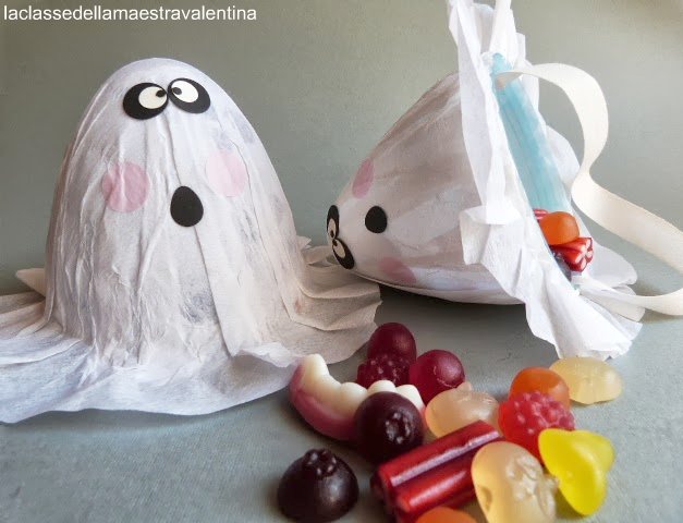Tra pochi giorni i miei bimbi busseranno alle porte delle classi per fare "dolcetto o scherzetto" e come secchiellini ho pensato a un fantasmino.