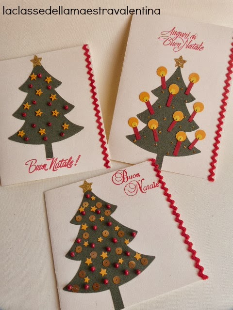 Fustellate qualche albero di Natale e divertitevi a decorarli con perline, stelline, bottoni... insomma, tutto quello che avete in casa!