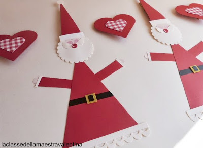 Per appendere i cuoricini e i Babbi Natale sulle solite cordine, ho incollato sul retro delle mollette di legno.