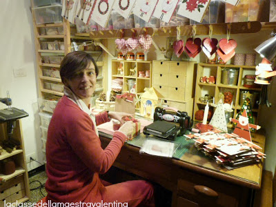 RispondiEliminaSplendido il tuo laboratorio...che invidia, io mi ritagliò un angolo del soggiorno e dá fastidio a tutti!!!!! :-) davvero un colpo d'occhio vedere tutte le tue meravigliose creazioni natalizie insieme, sono rimasta a bocca aperta. E anche tu sei una bellissima donna!!!!