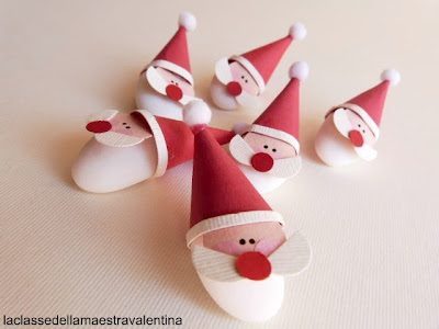Quando ho guardato i confetti bianchi, mi è venuto in mente di utilizzarli come barbe di Babbo Natale.