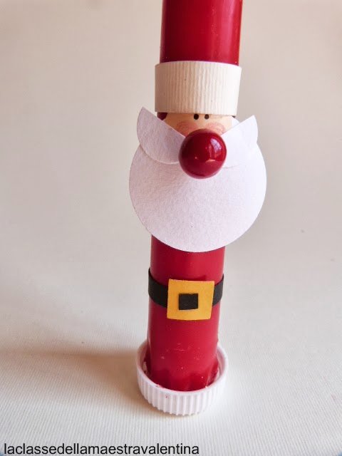 La candela rossa fa da vestito e cappello... a voi basterà proprio poco per trasformarla in Babbo Natale.