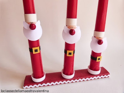 La candela rossa fa da vestito e cappello... a voi basterà proprio poco per trasformarla in Babbo Natale.