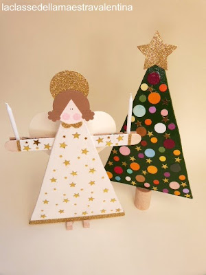 Avanzi di legno (compensato), abbassalingua, mollette e cartoncino è tutto quello che vi occorre per realizzare un angioletto candelabro o un alberello di Natale.