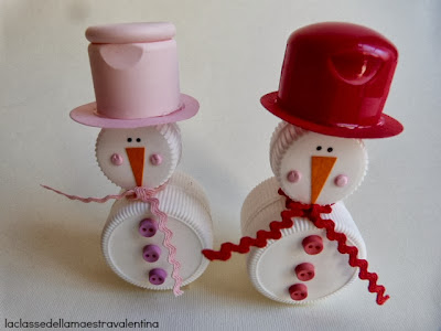 Concludo la lunga carrellata dei pupazzi di neve mostrandovi che cosa si può realizzare coi i tappi di plastica.