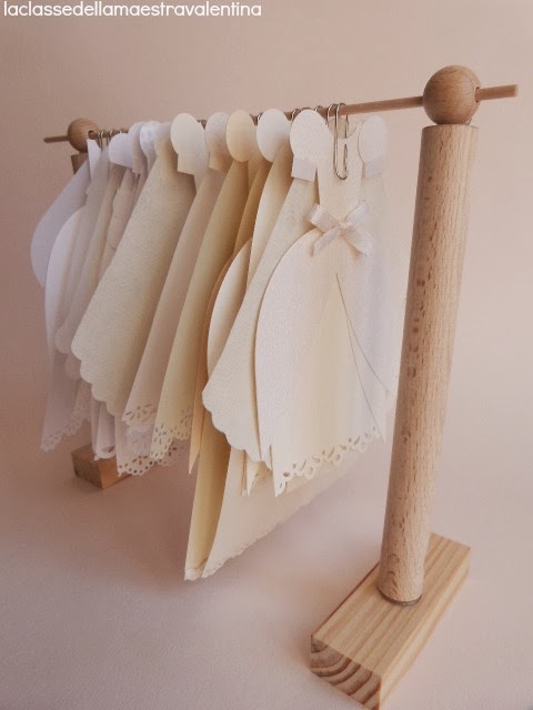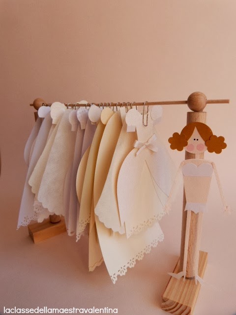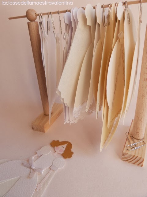 Basta una bambolina di carta, tanta carta bianca e tanti, tanti vestiti da sposa appesi su una tirella di legno.