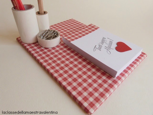 Detto questo, con una tavoletta di legno rifasciata, dei piccoli tubolari di carta e un piccolo blocchetto... ho realizzato un semplice regalino per mamma... i bambini possono pitturare e decorare il tutto con le pitture.