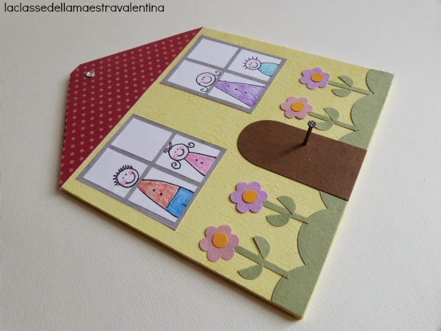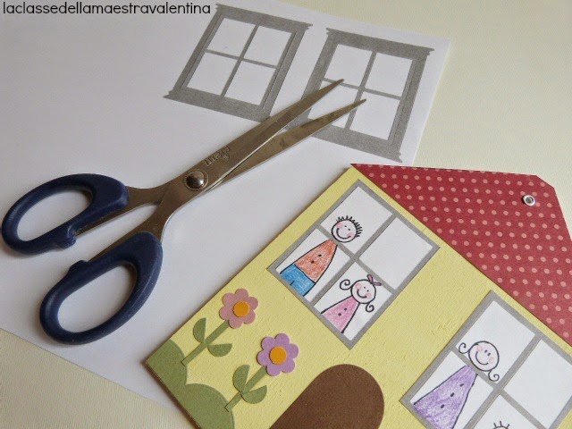 Ho disegnato i componenti della famiglia, li ho colorati e ho incollato le finestre, la porta, il prato e i fiorellini.