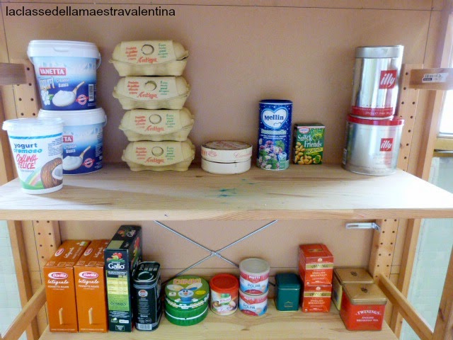 Si si, avete visto bene, sono tutte confezioni originali raccolte nel tempo, rigorosamente vuote, ma proprio quelle che le loro mamme comprano nei supermercati. Il bello di questo gioco è che il costo è zero, e se si rompono???... pazienza... queste confezioni sono facilmente reperibili, basta coinvolgere nella ricerca i bambini e le mamme .