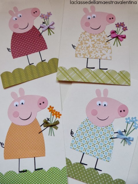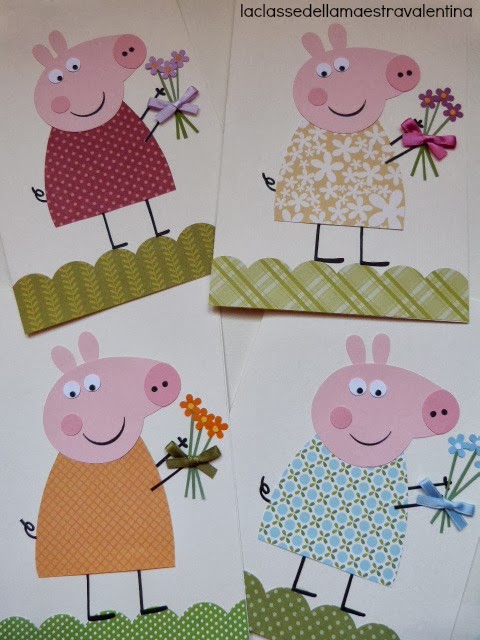 Se ricordate, nel post precedente Peppa pig aveva in mano un mazzolino di fiori... per questo si può abbinare il biglietto e il secchiellino.