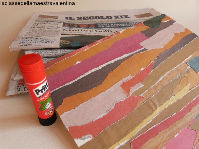 Sempre con la tecnica a strappo ecco uno sfondo di colori autunnali.
