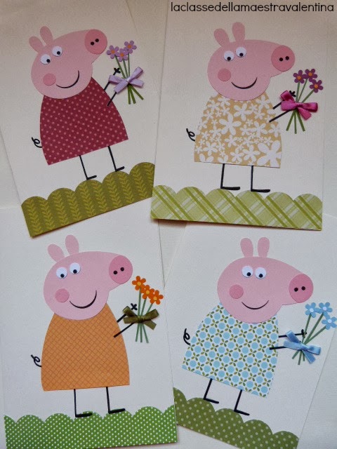Mi sono così divertita a fare dei biglietti invito con Peppa pig, modificando il colore del suo vestitino.