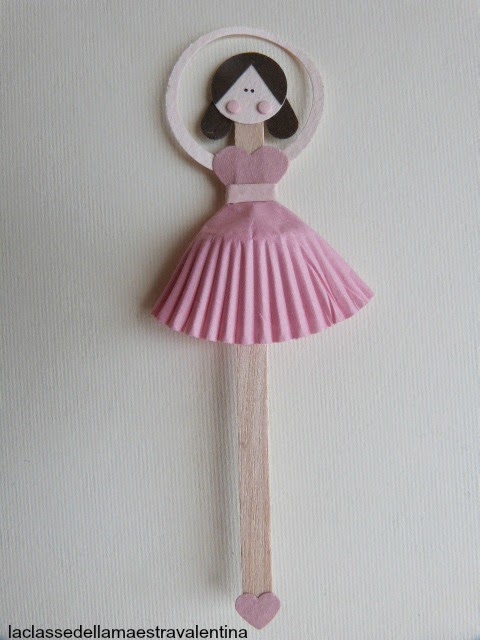 Care creative, oggi vi mostro delle semplicissime ballerine realizzate con palette di legno, (quelle per girare il caffè) carta e pirottini.