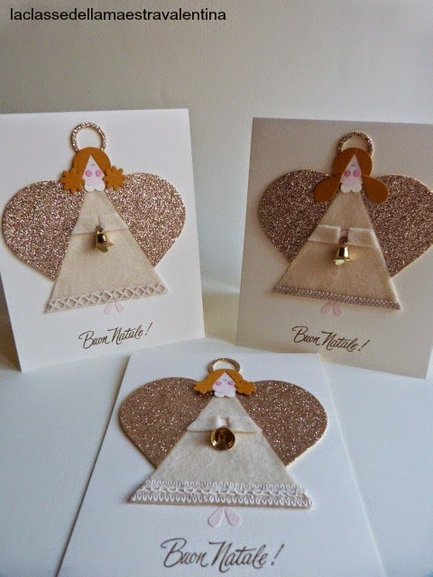 Con questo meraviglioso materiale, mi sono messa subito al lavoro... e con la gomma crepla glitter ho realizzato un po' di biglietti con dolci angioletti