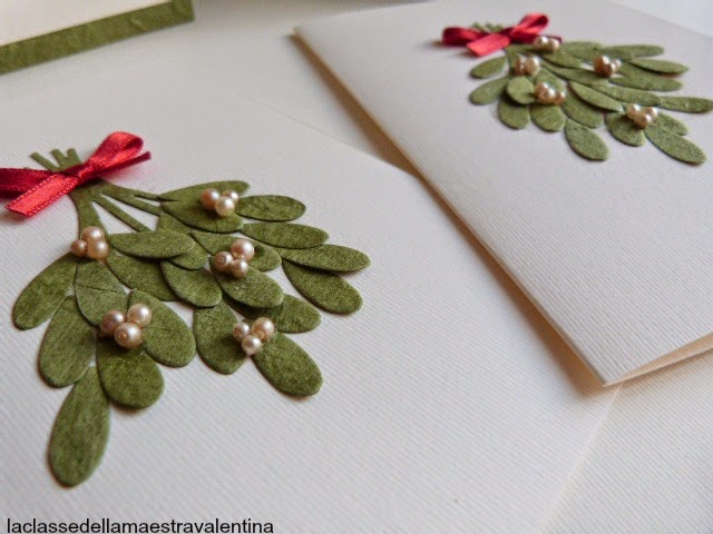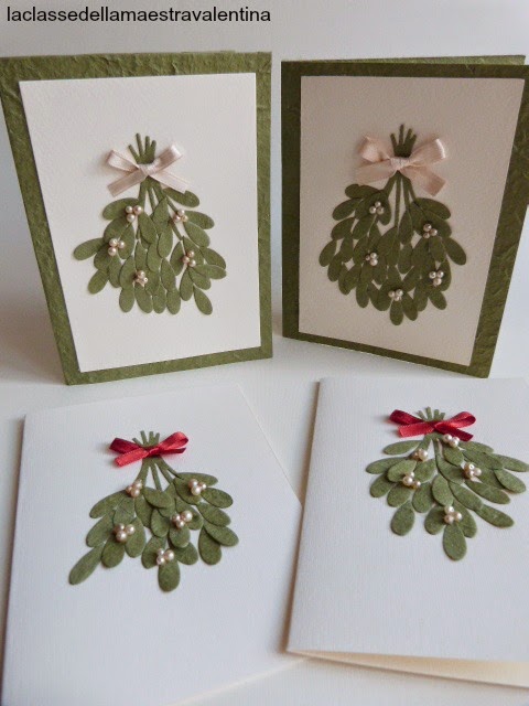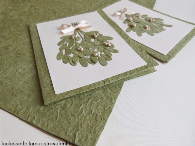 Care creative come vi avevo preannunciato, ecco dei bigliettini natalizi, realizzati con la bellissima carta gelso tinta verde di CREA FAMILY.