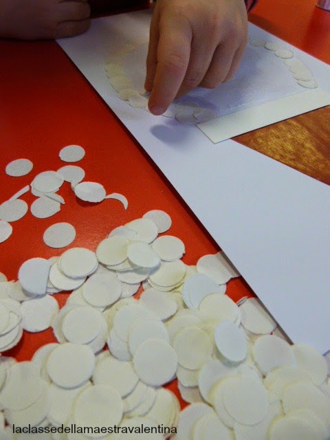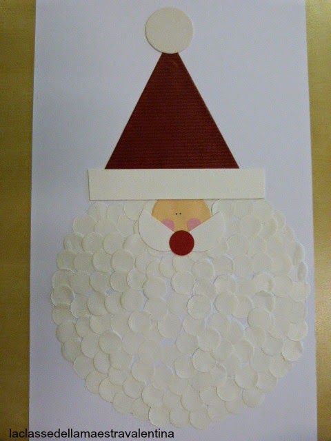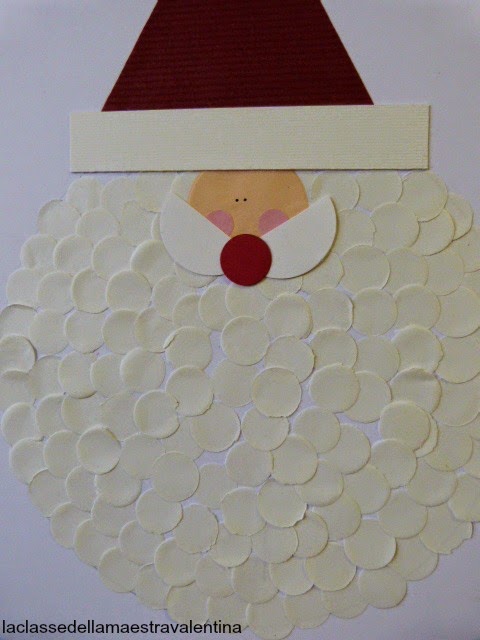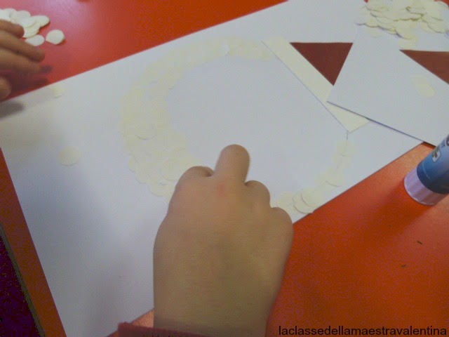 Muniti di colla, i bambini si sono divertiti a riempire il cerchio di coriandoli bianchi, formando così la folta barba di babbo natale.