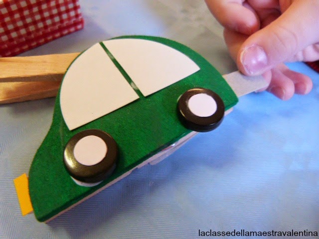 Per iniziare i bambini hanno carteggiato il pezzetto di legno (tagliato con il seghetto della DREMEL) e poi hanno pitturato la macchinina.