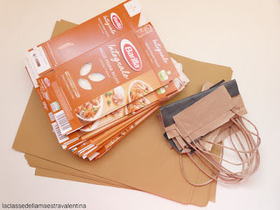 Quello che occorre sono scatole di pasta, maniglie di sacchetti e cartoncino.