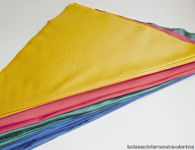 Con degli avanzi di stoffa ho tagliato dei foulard rossi, gialli, blu e verdi... il colore delle squadre.