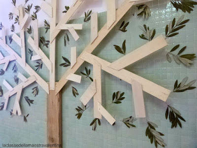 Ecco l'albero... ho applicato con del nastro adesivo di carta dei rametti di ulivo... questo è il risultato estivo... ma tra poco verranno appese quelle autunnali.