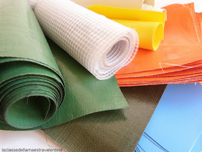 Avete presente i camion telonati? Ecco questi sono gli scarti di una fabbrica che fa i teloni per i camion.